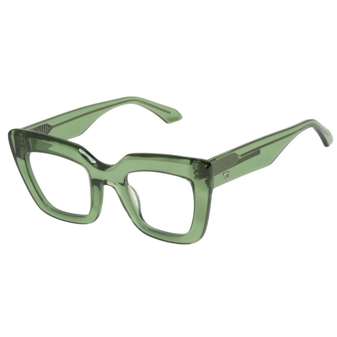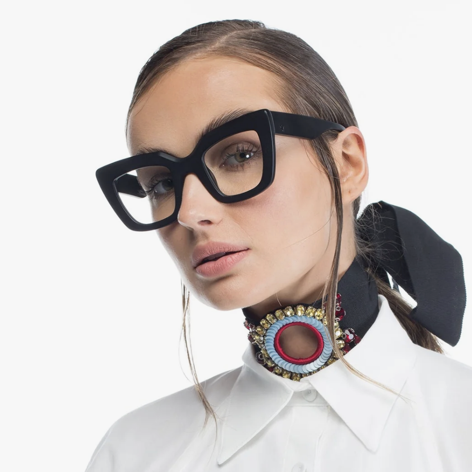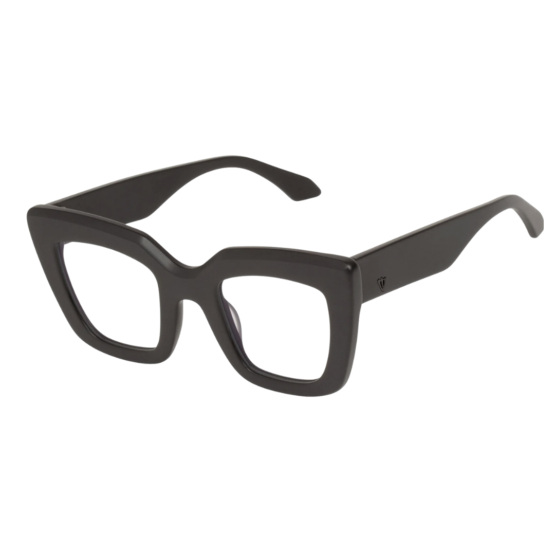 A cat-eye inspired silhouette that embodies confidence. This style encompasses zero base Italian nylon flat lenses and is hand-crafted from premium acetate.
