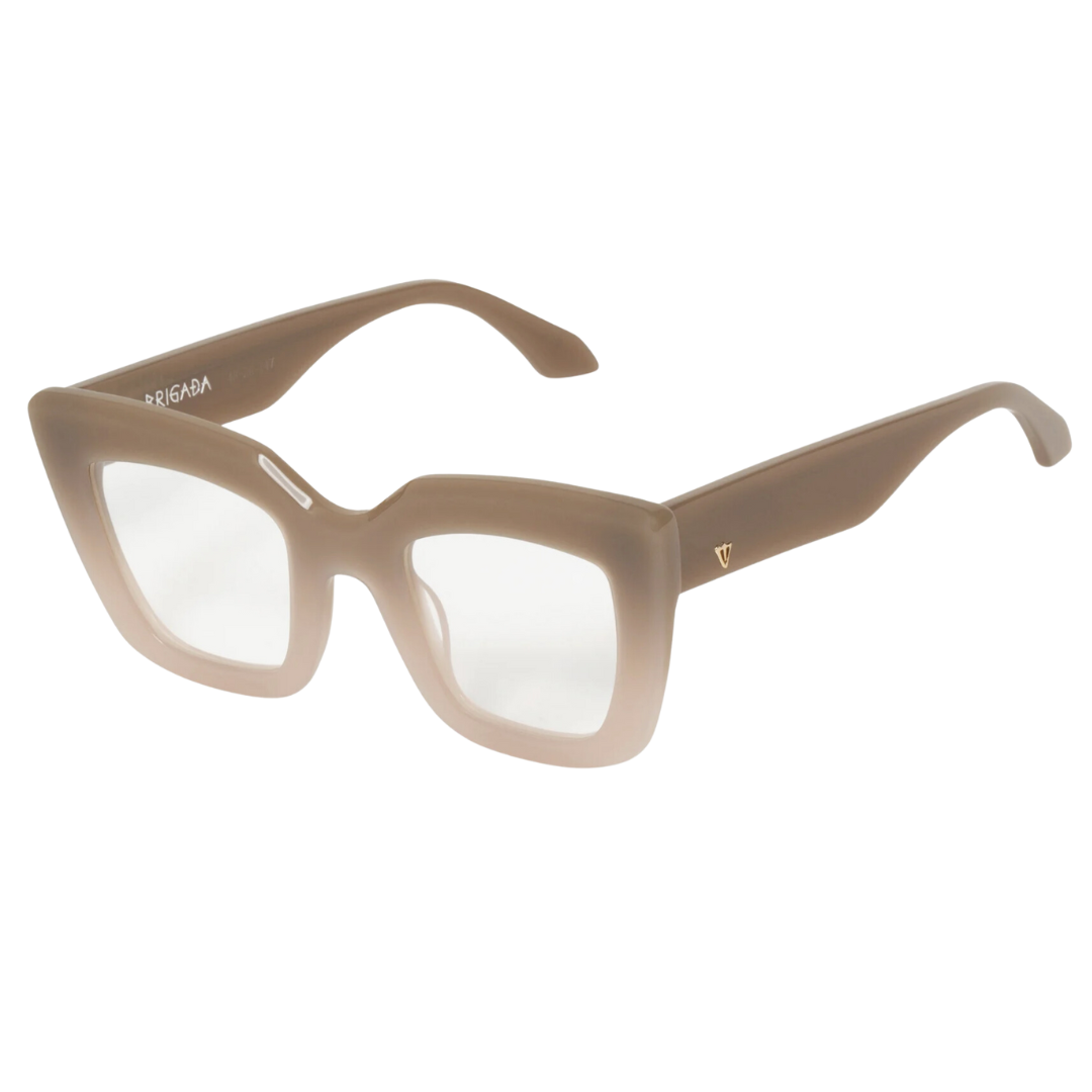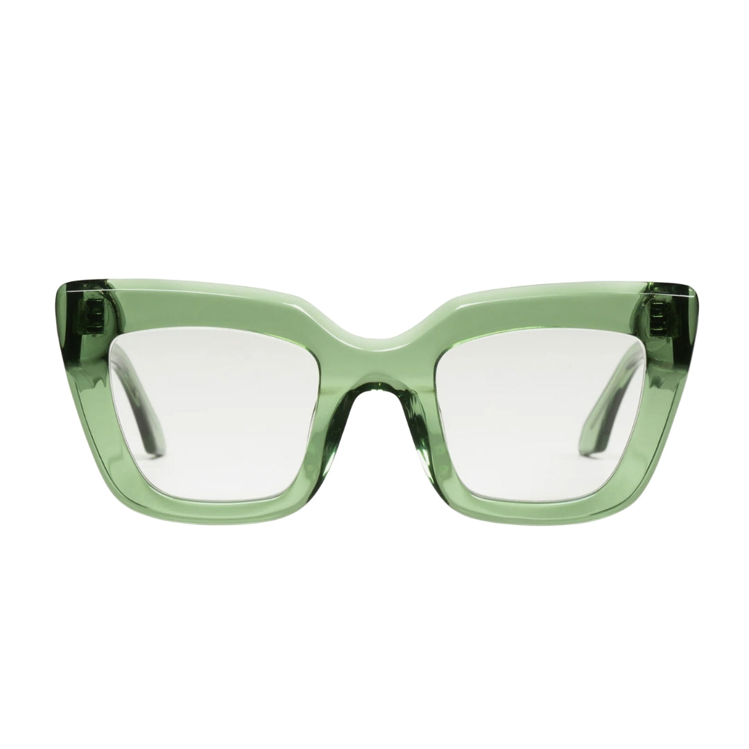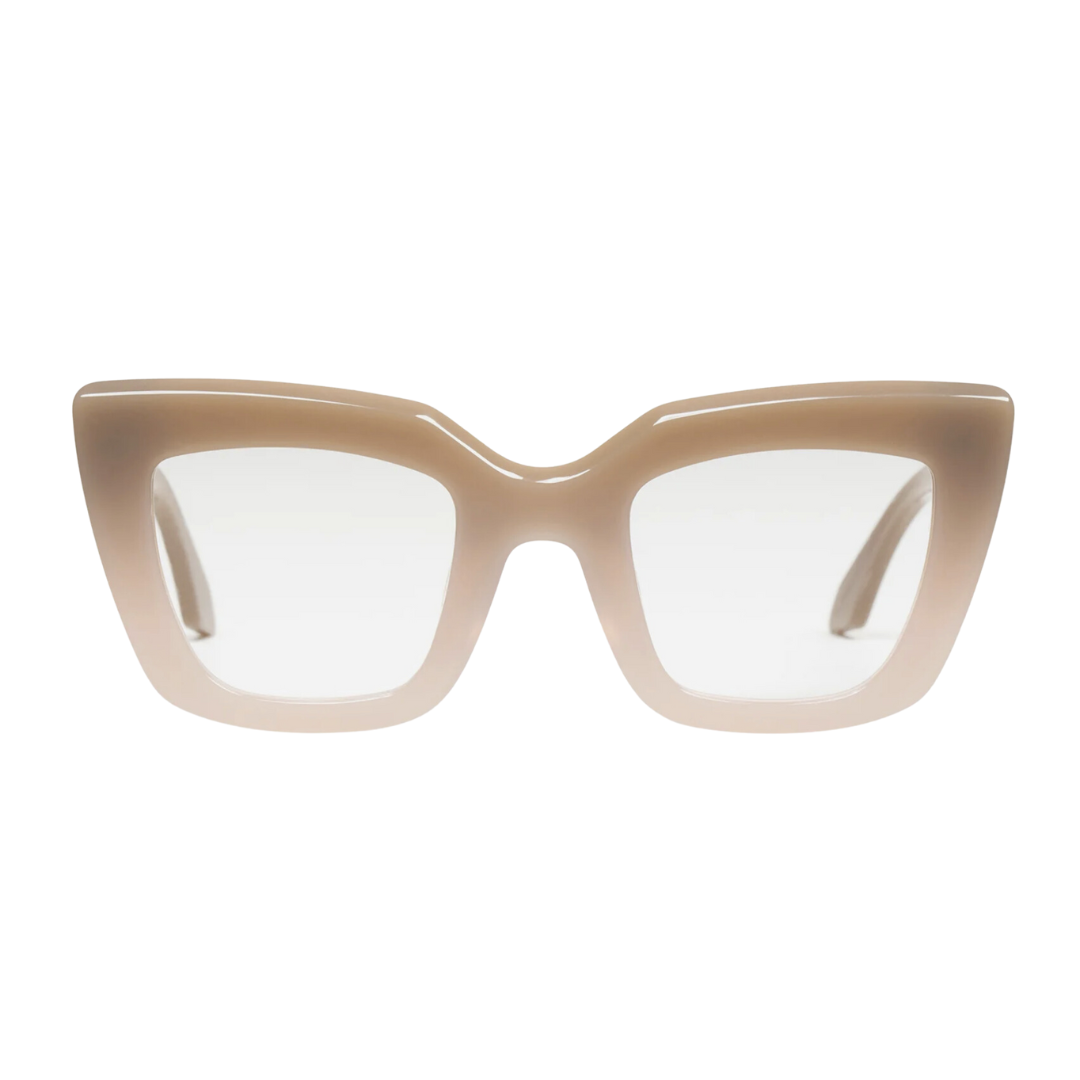 A cat-eye inspired silhouette that embodies confidence. This style encompasses zero base Italian nylon flat lenses and is hand-crafted from premium acetate.