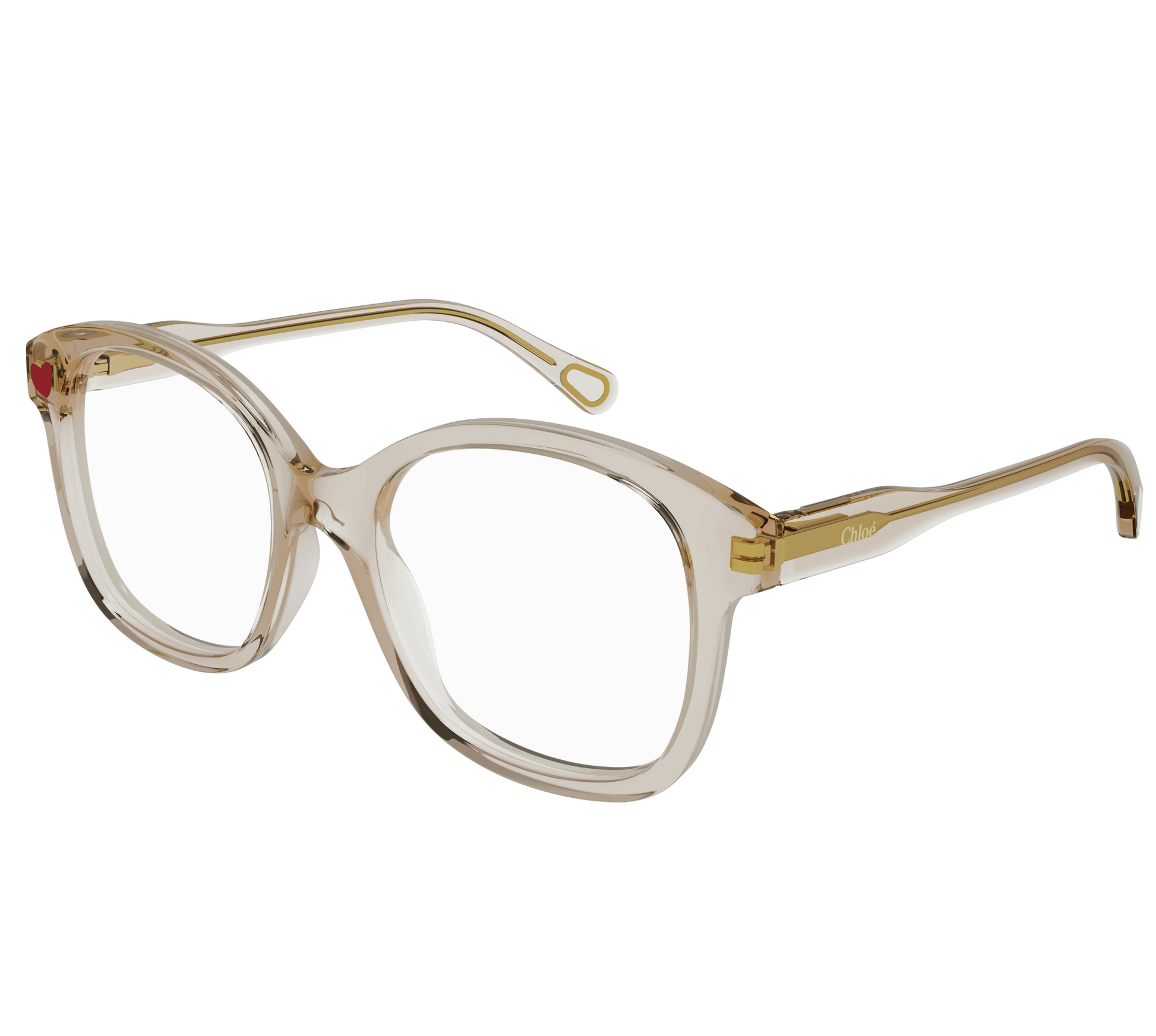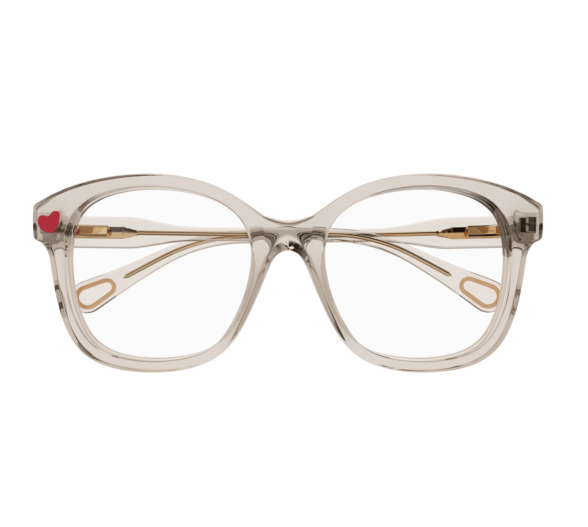 Rectangular acetate optical frame. Heart symbol tampered on the front. New temple design in a thinner version for an essential look.