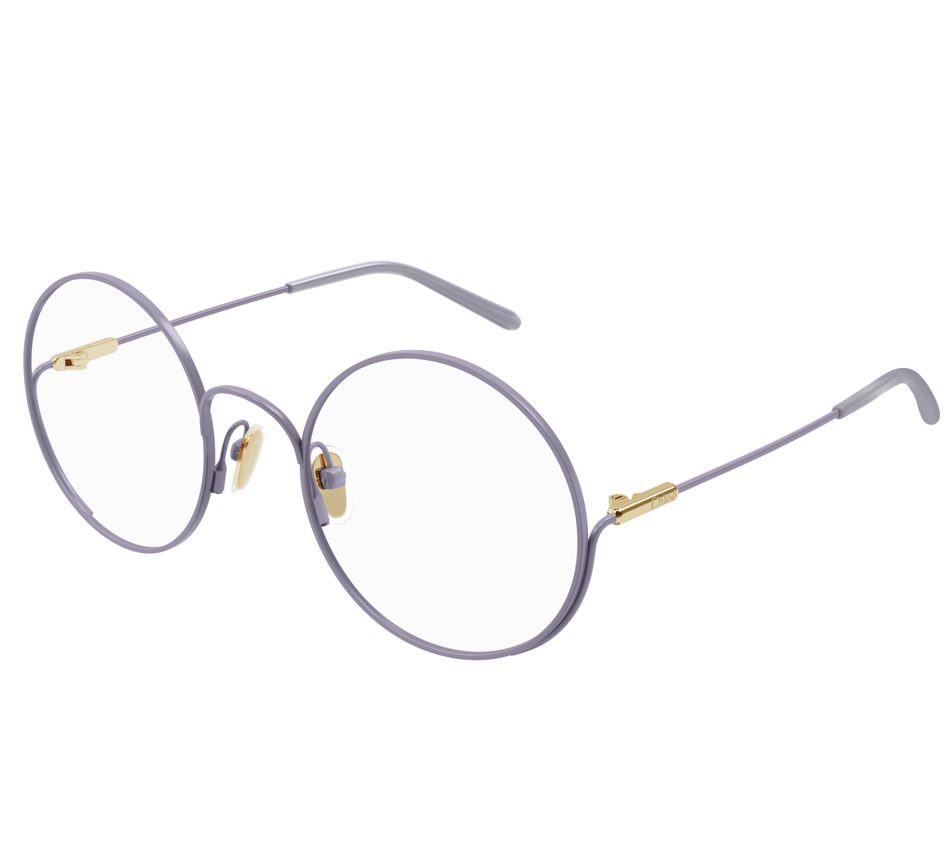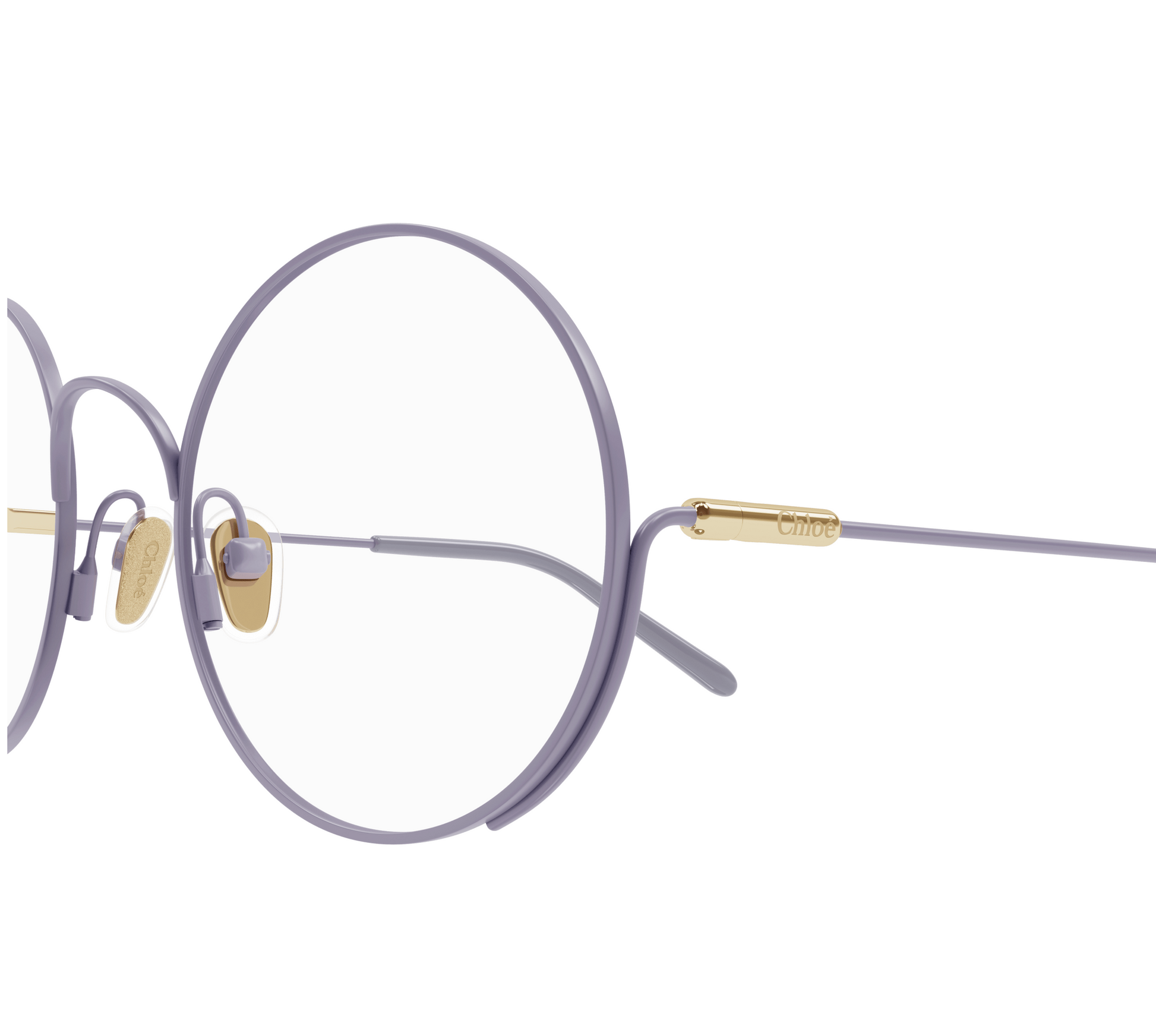 Round frame made in a very light metal construction. Mix of classic galvanics and girly colored metal, and an elegant oval Chloé logo plaque in a contrasting color to make it more visible.